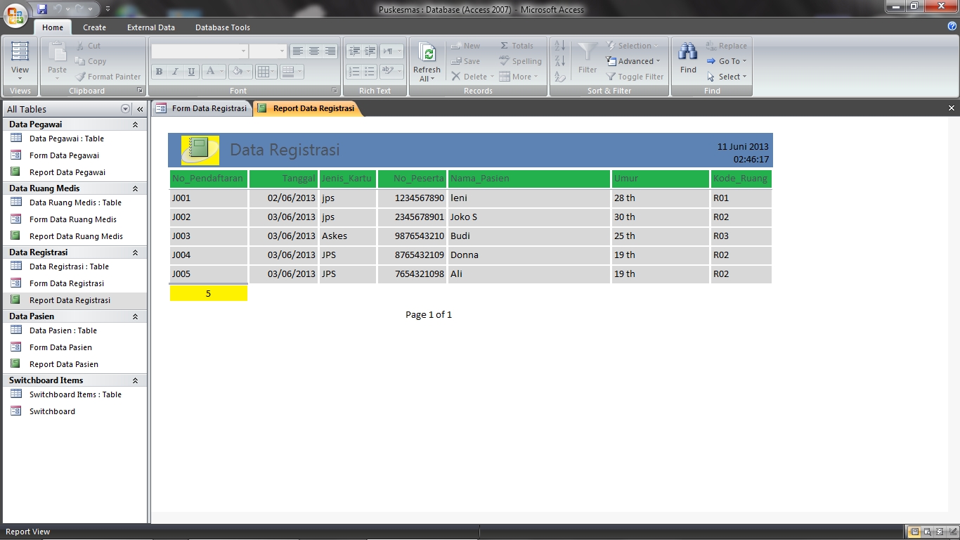 Contoh Form, Report Dan Swithboard Pada Microsoft Access 2007